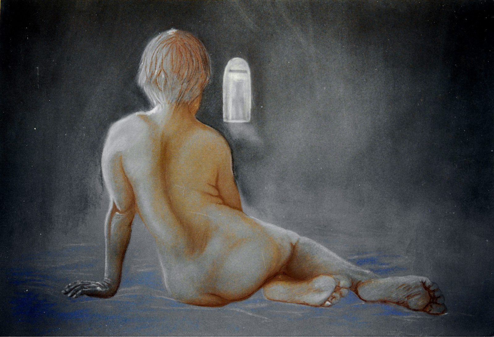 A body in stillness gazes toward the unreachable — where hope is shaped by light and longing.